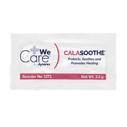 Dynarex CalaSoothe Skin Protectant Cream is designed to promote healthy skin, while helping to minimize dryness. The Cream creates a moisture barrier to help relieve skin irritations caused by contact with urine, diarrhea, perspiration, fistula drainage, feeding tube site leakage, and more. It also helps to soothe discomfort associated with minor burns, cuts, scrapes, and itching. CalaSoothe features a multi-ingredient formula that includes menthol, calamine, and lanolin for optimal effectiveness. Available in single use packets and larger tubes. Ideal for use in a variety of long-term care facilities, first aid kits, home care, and more.