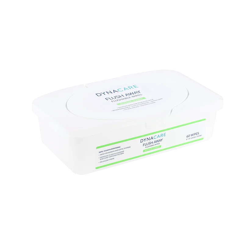 Dynarex Flushable Wipes are convenient, pre-moistened cloths designed to cleanse skin without the need for rinsing. These disposable, alcohol-free wipes are pH-balanced and formulated with aloe to help soothe and moisturize skin.