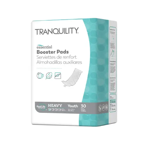 Tranquility® Premium TopLiner® Booster Pads extend the wear time of incontinence garments, so you can go longer between changes. Designed to absorb their stated capacity before allowing additional fluid to pass through to the primary garment. This makes them ideal for pairing with disposable underwear or adult diapers, but should not be worn in regular underwear. Intended to be flexible so you can position them where you need extra protection; for women, this may be more toward the bottom, while for men, it may be more toward the front. An adhesive strip keeps the pad in place. Boosters can be folded and even doubled for added protection, but should not be cut. The clothlike material is gentle against your skin and quiet when you move.